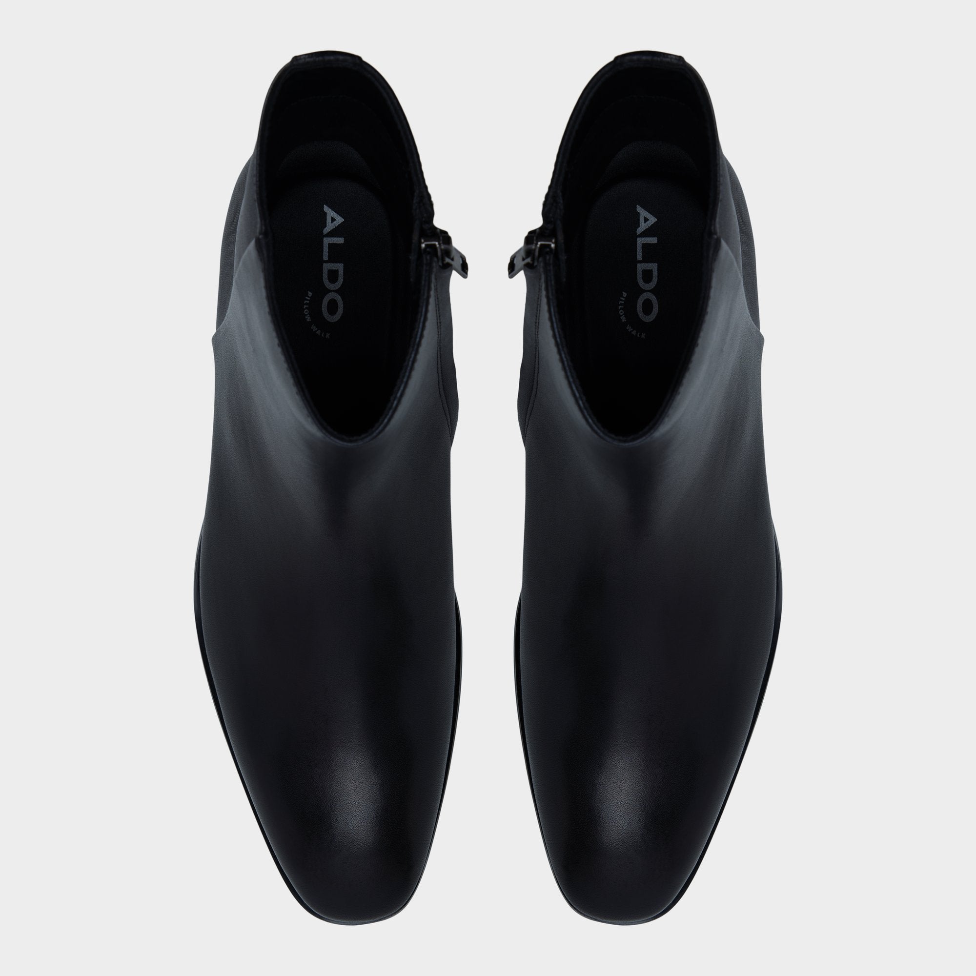 Smooth black leather in front and a textured rear panel create a subtle contrast in this ankle boot, while a side zip offers quick access and a low stacked heel ensures easy movement. Anchor slim dark denim for evening meet-ups or polish tailored trousers on office days-its squared toe finishes each look sharply.