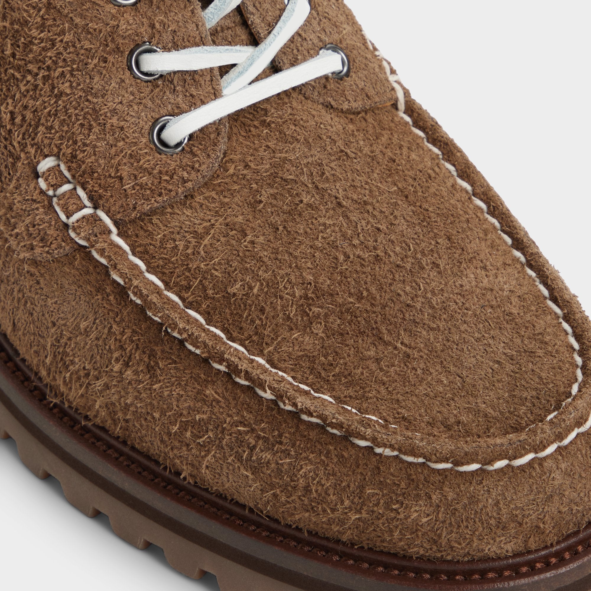Rugged brown suede with crisp white stitching exudes quiet confidence, while a lugged rubber sole grips any surface-from wet decks to slick pavement. Roll them up with cuffed jeans for seaside brunches, or anchor them beneath a dark bomber for late-night patio gatherings-the low-key versatility suits every moment.