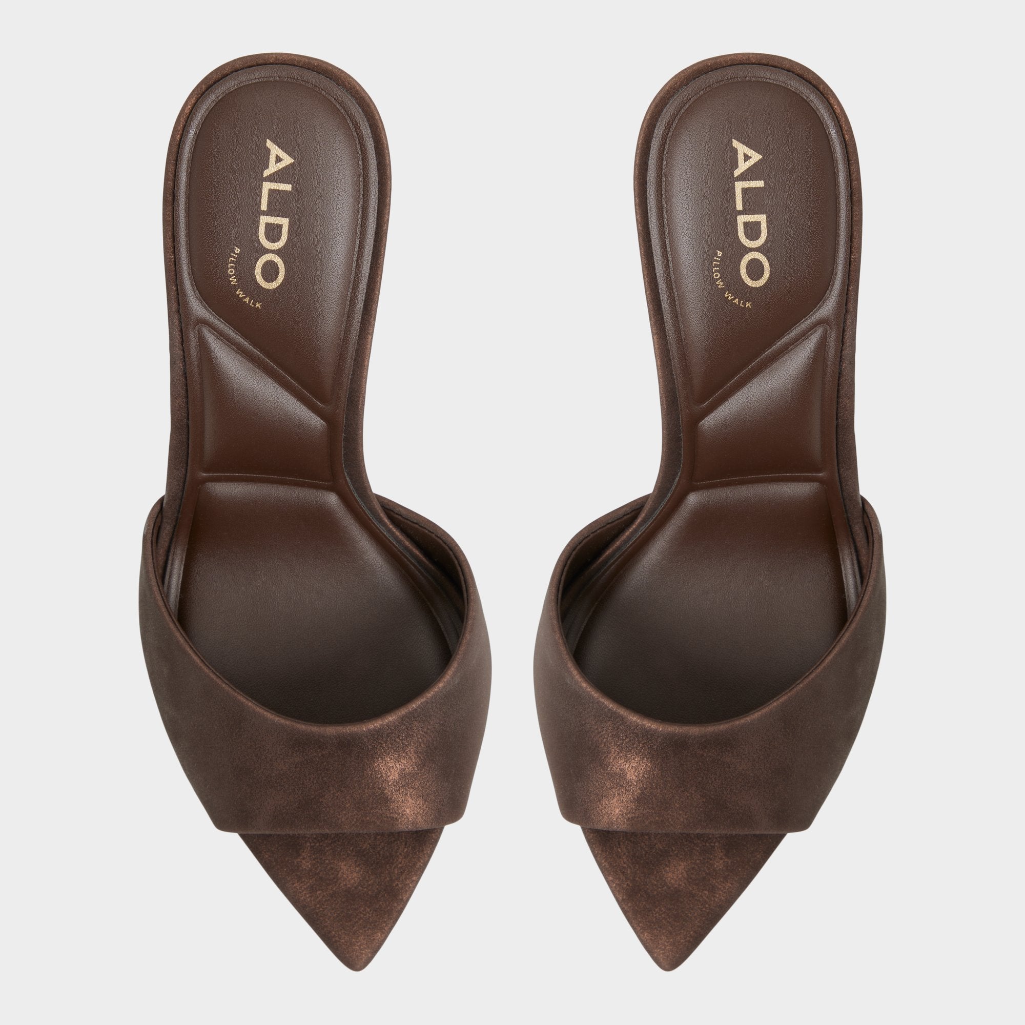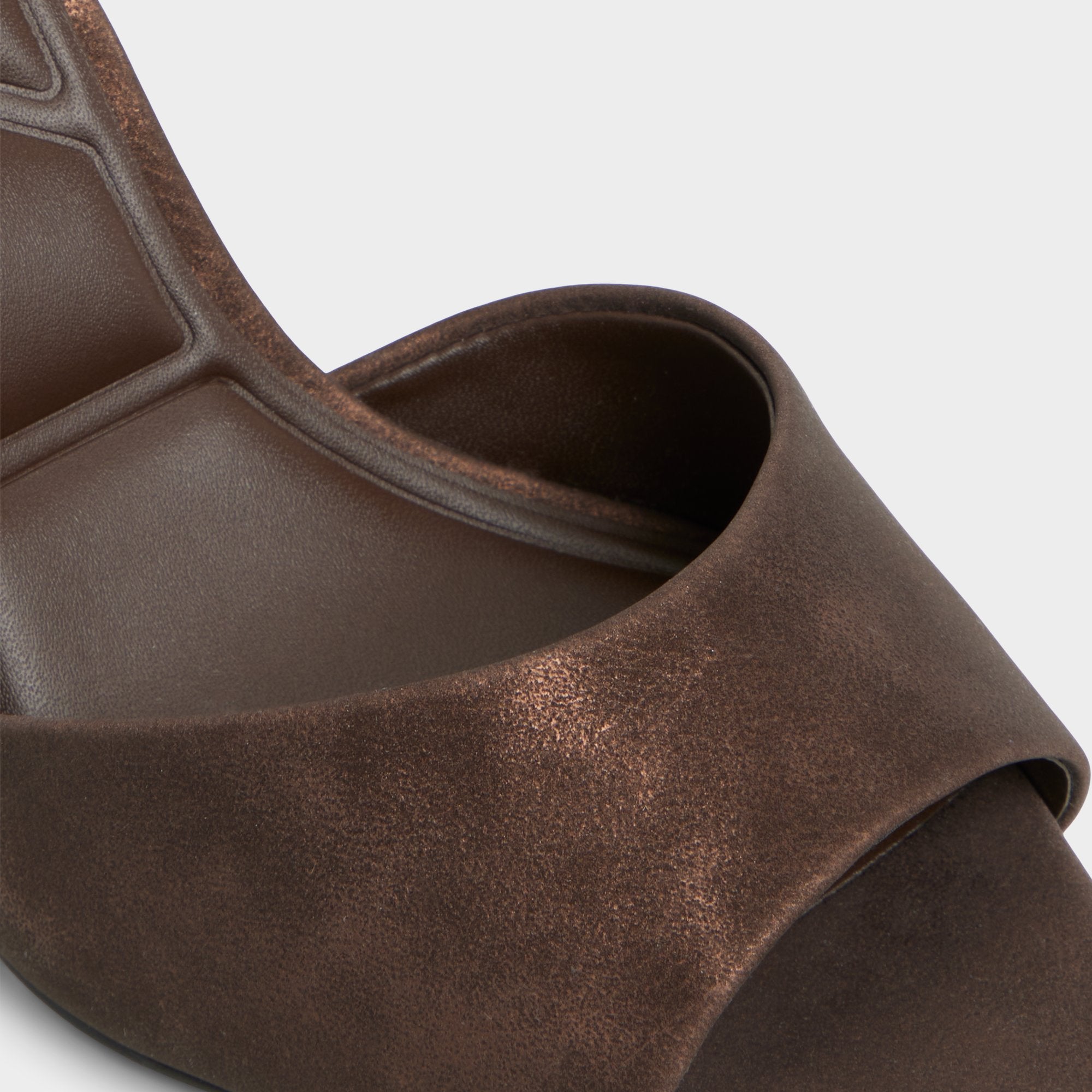Mocha suede drapes the clean vamp of a slip-on mule, elevating the look with a sculpted stiletto that adds leg-lengthening height and a confident, after-hours glow you can feel. Pair with cropped leather trousers for cocktails, or slip into a satin dress for a dinner-polish finish.