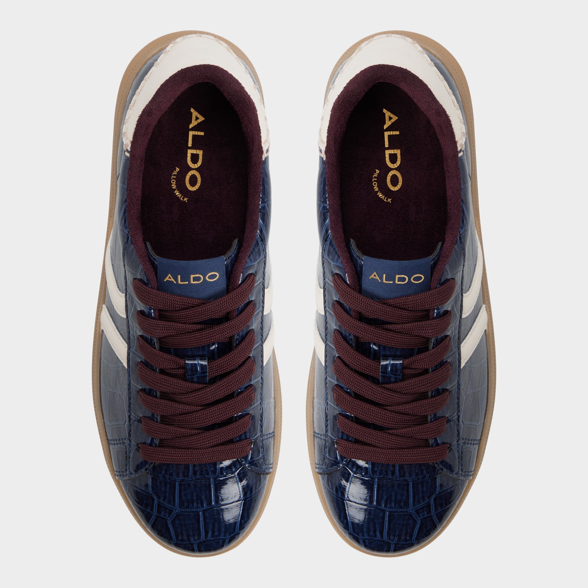 Glossy croc-embossed patent leather transforms this retro cup-sole sneaker into midnight swagger territory while creamy side stripes and gum rubber maintain grounded style and cushioned comfort through every adventure. Pair with tailored joggers for airport dashes or slide under a satin slip skirt when gallery hops demand easy confidence.