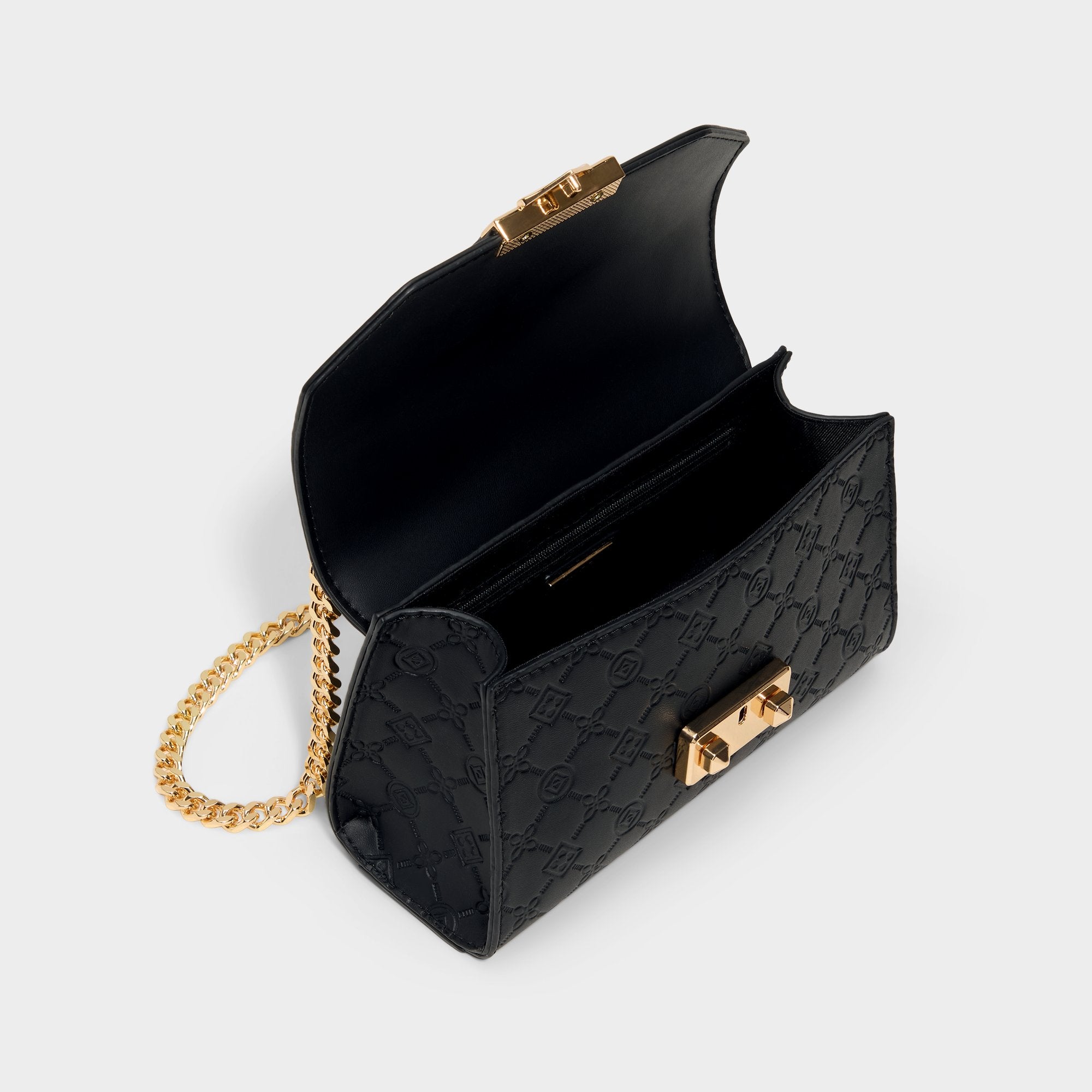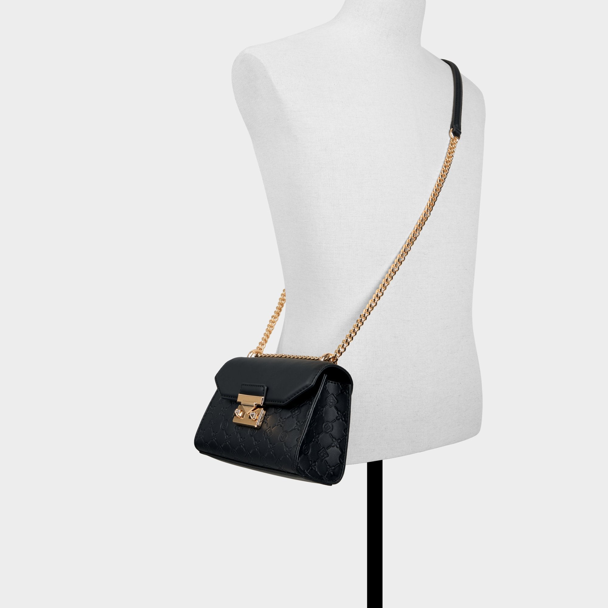 Midnight-black quilted leather frames a geometric flap crowned by a bold gold push-lock, giving this structured crossbody city-polish with a whisper of glam that travels from desk to dinner. Carry it with a satin slip for rooftop dinners, or sling it over blazer-and-jeans for city coffee runs.