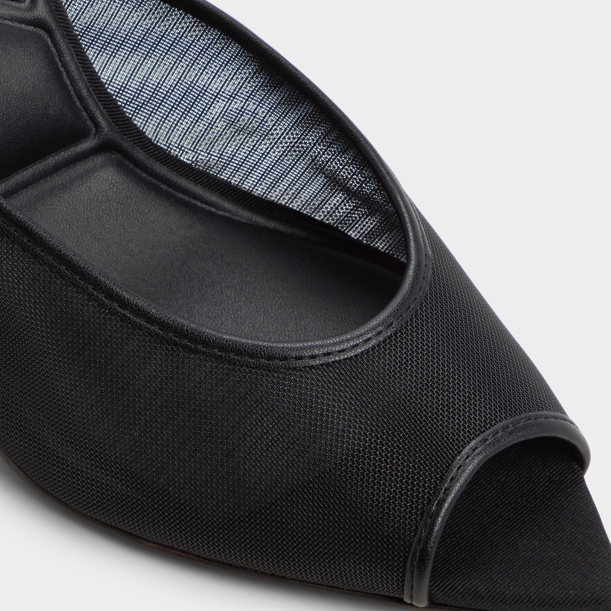Sheer mesh drapes the foot like night air, sculpted with smooth leather piping on an open-square-toe mule, a sultry lift that stays breathable through city strolls and after-dark confidences all day long. Pair with tuxedo trousers for gallery openings, or slide beneath silky midis as glowing city walks turn into starlit conversations.