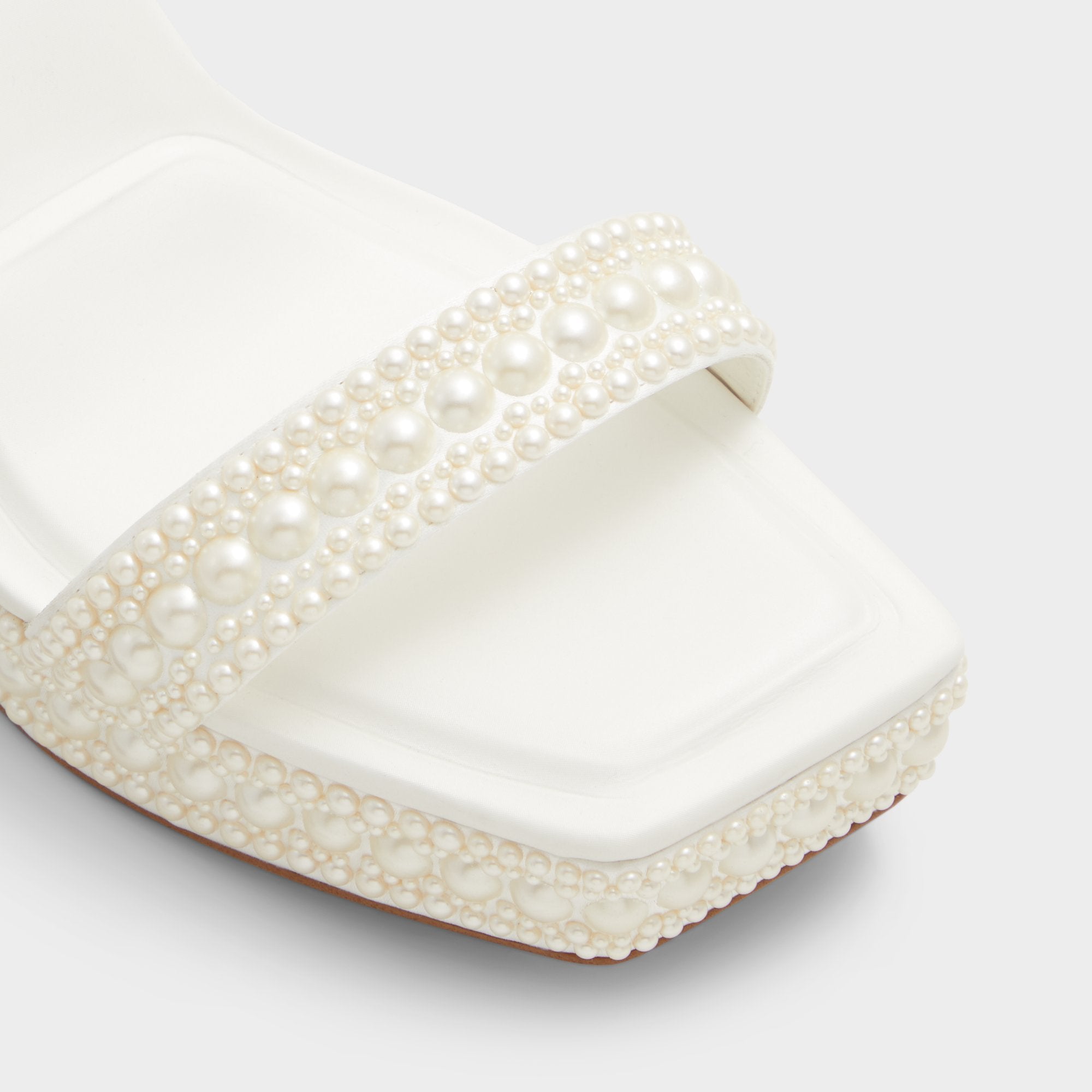 Covered in captivating pearls, these stunning white platform heels were destined to stand out. It doesn’t get more luxe than this!