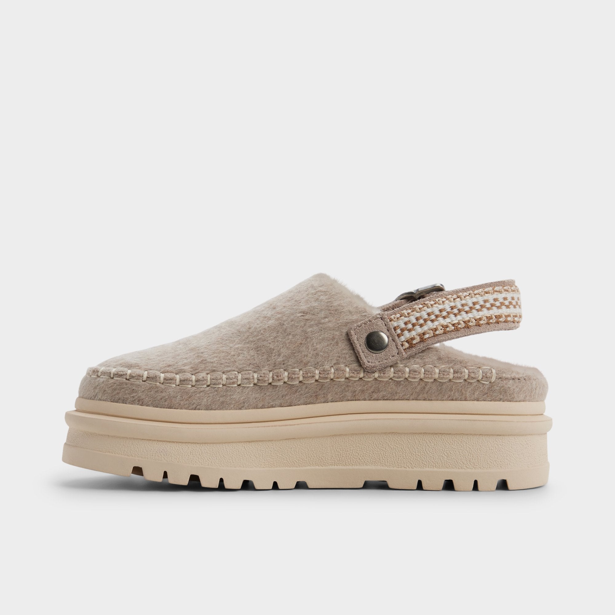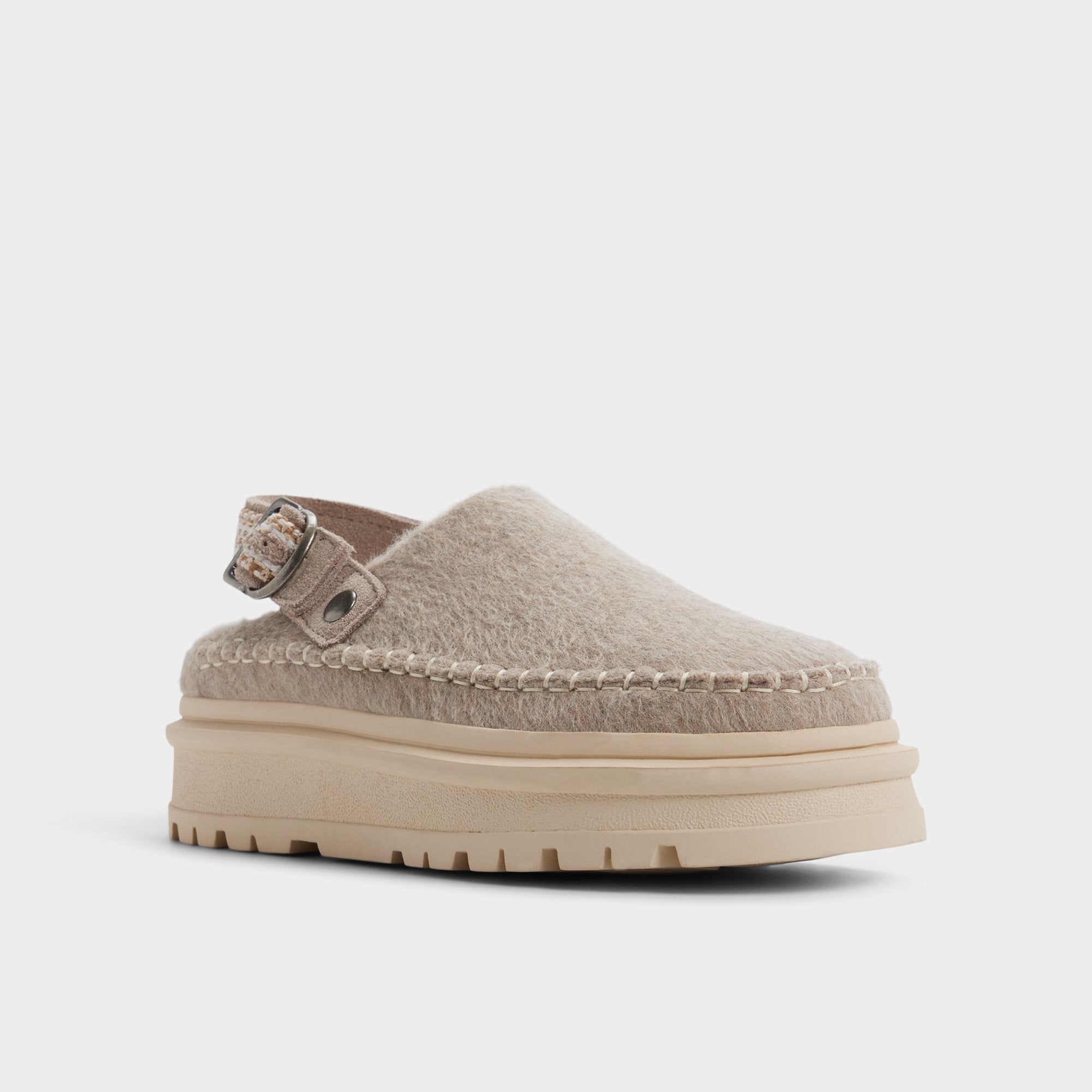 Plush shearling peeks from silky suede, while an adjustable buckle strap and a chunky lug platform elevate the classic clog into a cozy, confident silhouette built to conquer frosty tiles and early commutes. Pair with wide-leg knits for market wanderings, or cuffed denim for city-strolls that drift from day to night.