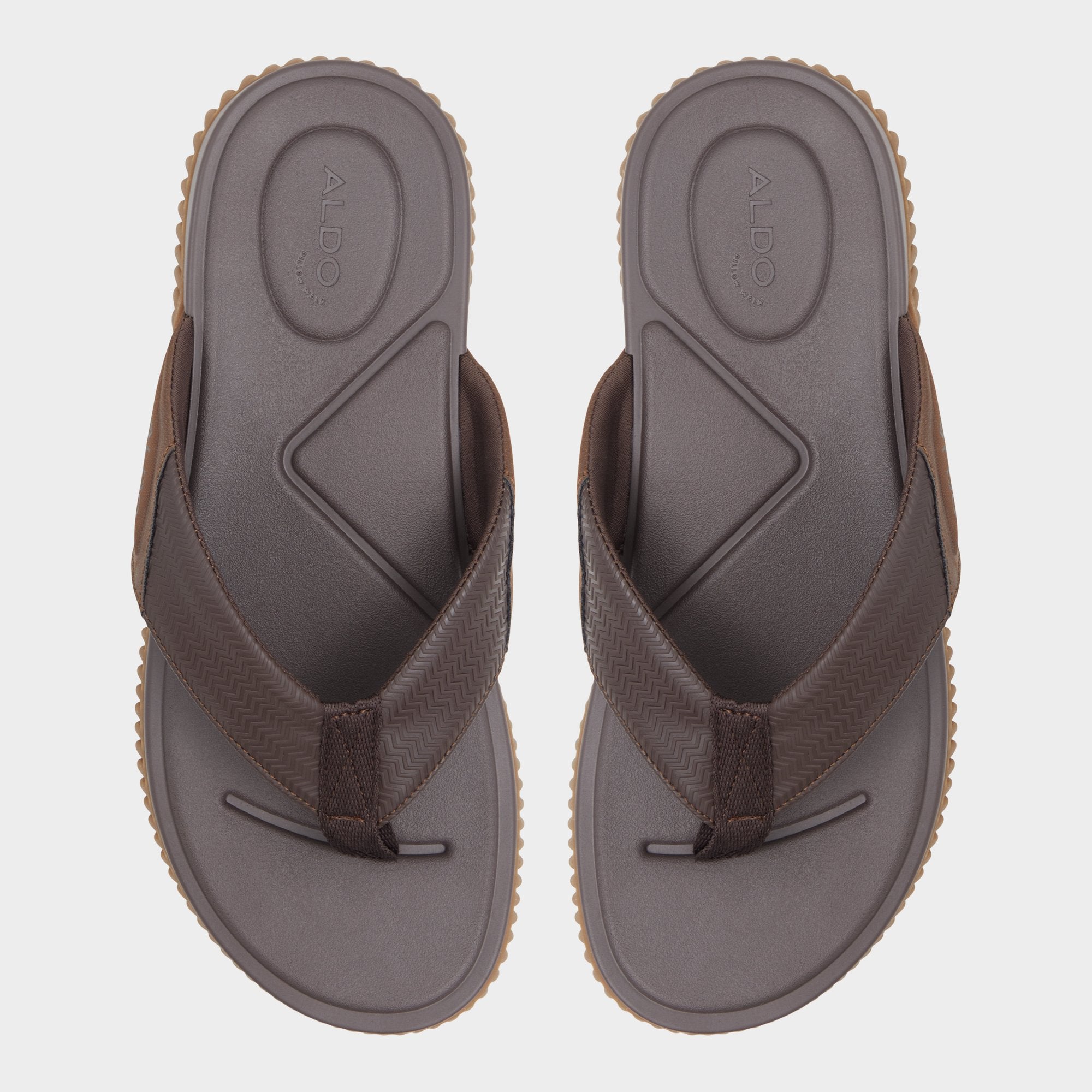 A chevron-textured brown strap combines with a cushy synthetic footbed, while the flexible wave-grip rubber sole prevents slips during shoreline detours or poolside sprints for fresh drinks. Pair with swim trunks for beach volleyball or anchor rolled linen pants at sunset barbecues-barefoot ease, grown-up look.