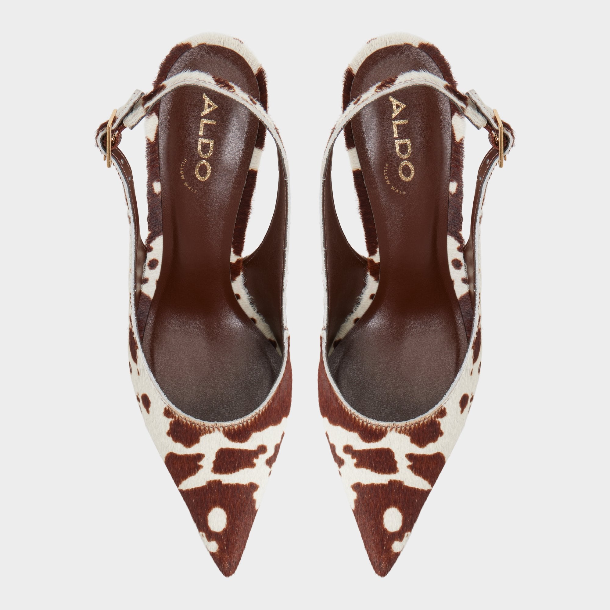 Calf-hair spots wrap slingbacks, while a gold-tone buckle gleams at the strap and a sculpted heel gives this pair a city-ready, polished bite for evenings out and early coffee runs alike. Pair with cropped tailoring for lunches, or ground a sleek midi for rooftop drinks.